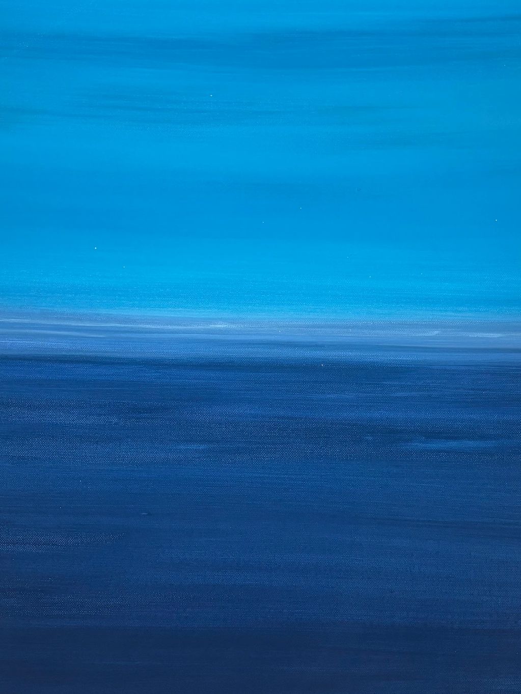 “Whisper of Peace” is an invitation to pause, breathe, and see differently. Layers of tranquil blues melt into one another like a gentle breeze over still waters, creating a space where time seems to slow and the soul can rest. The painting becomes less about what is seen and more about what is felt — a sacred stillness woven t